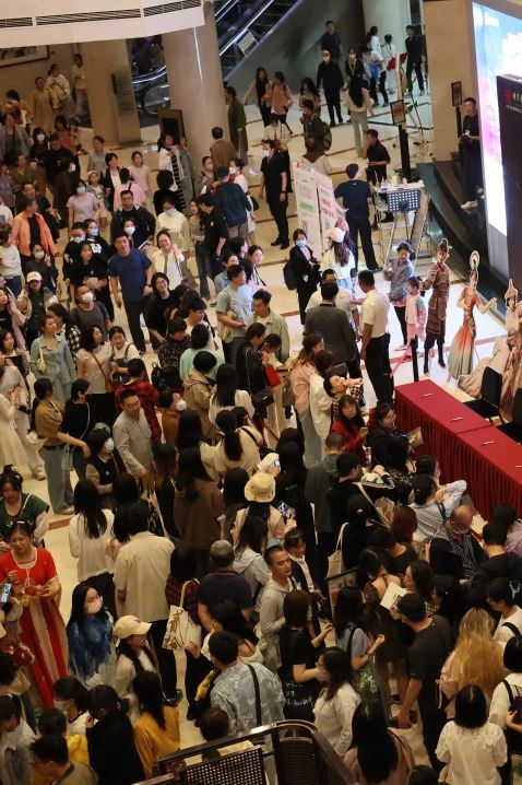 另一侧早早排起长龙的队伍也是本次演出特别安排的体验活动,让观众免费试穿在央视春晚大放异彩的“锦绣”舞段汉制红裙,精致的服装与头饰让前来体验“央视同款”的观众络绎不绝。还有现场安排的五星猜谜游戏,高难度的题目并没有难倒五星的铁杆粉丝,大家在火热气氛中赢得多份文创奖品。