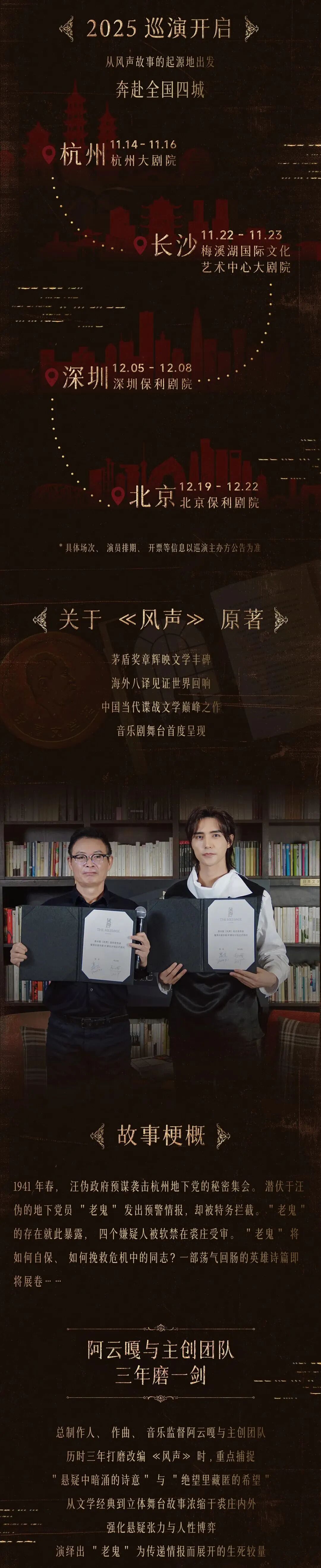 音乐剧《风声》扬帆起航,全国巡演正式官宣
