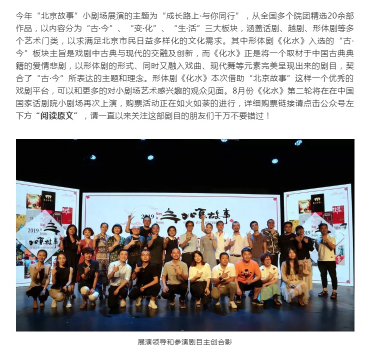 剧院荣誉 | 形体剧《化水》入选2019“北京故事”优秀小剧场剧目展演