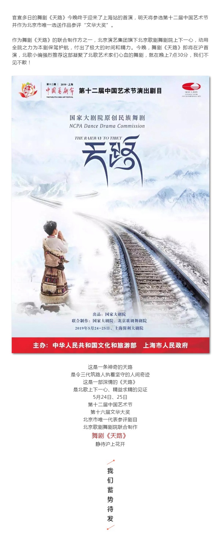 文华奖上海之行 |舞剧《天路》今晚亮相上海保利大剧院