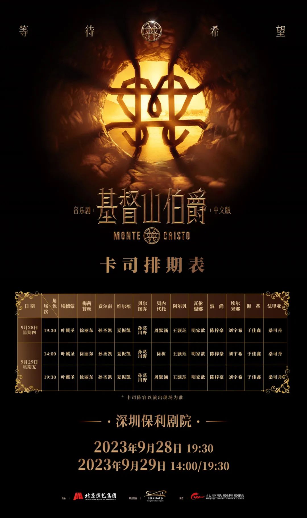 由北京演艺集团出品,上海文化广场剧院管理有限公司联合出品,北京歌剧舞剧院制作的音乐剧《基督山伯爵》中文版深圳站将在2023年9月28日——29日登陆深圳保利剧院,亮相第十九届中国(深圳)文博会艺术节。