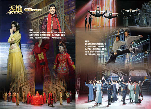 由旷达(文化部王海平部长)编剧的音乐剧《天桥》,讲述一个有着舞台剧梦想的“燕舞台”的老板林鹏飞,想通过自己的系列创新,让自己的“燕舞台”在天桥鹤立鸡群。在竞争中成为业界翘楚。但是,困境连绵,理想曲折,深爱他的妻子金环,又被别人所爱,苦闷中,他企图通过对另外一个女人银环的爱摆脱苦闷,改变精神状态。这种做法又带来爱妻金环的绝望和苦闷。常逛天桥的报馆记者少爷爱袁培文,爱上金环,却无法带金环离开林鹏飞,于是间,爱恨情仇,痛苦纠缠,各自只能埋藏深爱。恰逢时代风云际会,伴随辛亥革命的爆发,新思潮开始冲击这年轻人。他们的梦想与追求,将随新时代大幕的开启,而出现解决的可能。